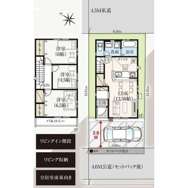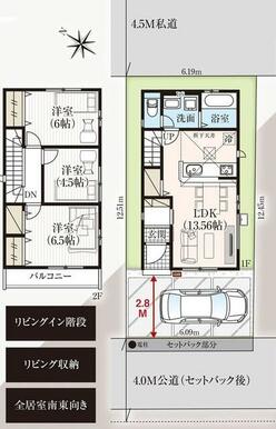 | 土地面積 | 実測 76.68㎡ | 私道負担面積 | 3.82㎡ |