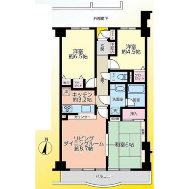 | 間取り(内訳) | 3LDK(和6洋6.5/4.5LDK11.9) | ||